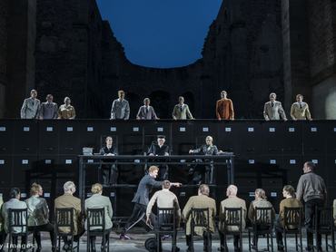 Eredtileg külön novellaként jelent meg A törvény előtt címmel, csak később vált A per részévé. A börtönkáplán különös történetet mesél K.-nak a Törvény kapujában álló őrről és egy messziről érkezett emberről, aki bebocsátást kér. A kapuőr azt mondja, nem engedheti be, megpróbálhat beszökni a tilalma ellenére, ám tudnia kell: ő hatalmas, pedig csupán a legkisebb a kapuőrök sorában. Minden teremnél újabb őr áll, és mind egyre hatalmasabb – ő maga el sem bírja viselni a harmadik őr látványát. A férfi egy zsámolyra ül a kapu mellé, és napokig, évekig vár a bebocsátásra. Részt vesz kihallgatásokon, mindenét arra költi, hogy megvesztegesse a kapuőrt, aki mindent el is fogad, ám nem engedi be. Pedig a kapun nem mehetne más be, csak a férfi: a bejáratot neki szánták. A férfi végül meghal, a kapuőr pedig becsukja a bejáratot.