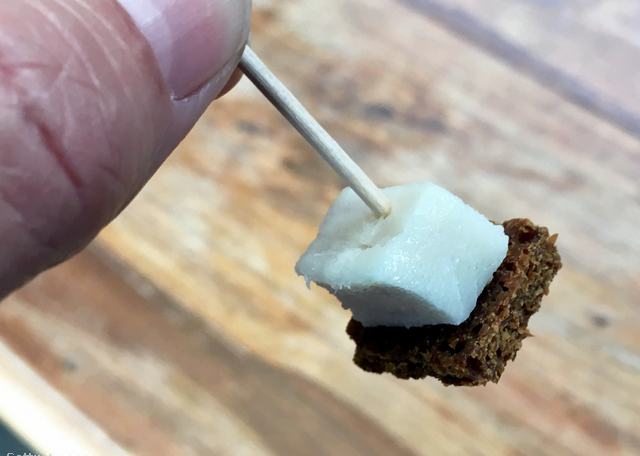 Ez is egy erjesztett hal, amelyet többnyire ropogós vajas, sajtos kenyérrel vagy főtt burgonyával pépesítve fogyasztanak.