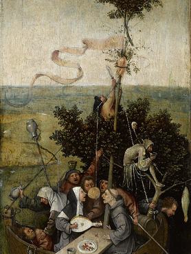 A flamand festő alkotásait a művészettörténészek kétféleképpen értelmezik. Az egyik elképzelés szerint Bosch moralista, aki mélyen hívő keresztényként az emberi gyarlóságokat és bűnöket ostorozza. Mások szerint egy tréfacsináló, akinek festészete korának szatirikus, humoros miniatúráiból táplálkozott. Életéről, festményei keletkezésének körülményeiről keveset tudunk, szimbólumai közül több a saját korában is rejtélyes volt, ma pedig még inkább az. Képeinek ismerői szerint mindenesetre a korsó a bujaság szimbóluma; a hal a sátáni gonoszság jelképe, az eper jelenheti a földi kéjt, a mohó élni vágyást, a megfeneklett hajó a lezüllött egyházat, a fordított tölcsér pedig, amit alakjai fejére tesz, a csalárdságot.