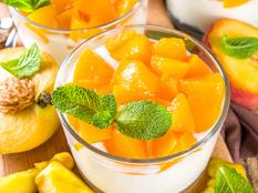 A barackokat kanalazd poharakba, a zselatint áztasd be. A többi hozzávalót melegítsd össze, majd keverd hozzá a zselatint és hagyd, hogy elolvajon benne. Ha elkeverted, töltsd poharakba, majd adj neki legalább egy órát a hűtőben. Hidegen, a forró pattogatott kukoricával a tetején tálald.