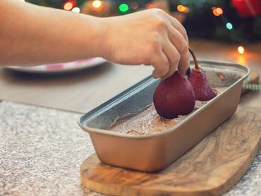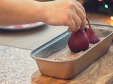 Öntsd egy tepsibe, szórd meg a körtekockákkal (vagy -szeletekkel), majd 170 fokon 35-45 perc alatt süsd készre. A maradék cukros borból fél óra alatt sűrű szirupot tudsz fűzni a tetejére.
