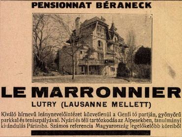 Boncza Berta édesapja, Boncza Miklós országgyűlési képviselő volt, így megengedhette magának, hogy lányát a legrangosabbnak tartott svájci nevelőintézetek egyikébe (Le Marronnier) küldje. A tehetős családok Európa szinte bármely szegletébe küldhették gyermekeiket bentlakásos iskolába; a lapokban svájci, brit, belga, francia és osztrák nevelőintézetek és „pensiók” hirdetéseiből válogathattak az érdeklődők. A legnépszerűbb kétségkívül Svájc volt: az alpesi ország a korabeli köztudatban úgy élt, mint „Európa ifjúságának nevelője és tanítója”, ahol „a tanítási módszerek roppant arányú fejlesztése” zajlik, korszerű és hatékony nevelést biztosítva a lányok (esetleg a fiúk) számára.