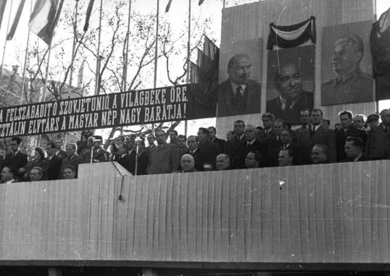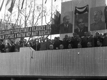 A Lánchíd ünnepi átadásán 1949-ben felvonult a kommunista párt színe-java, köztük Kállai Gyula
