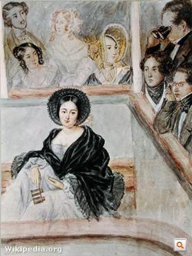 „Felemelt fejjel haladt át az őt csodáló tömegen, és mi, Liszt és én, meglepődtünk, amikor odajött hozzánk, és bizalmasan leült mellénk a padra, mert korábban egyikünk sem beszélt még vele. Éles eszű, jó ízlésű és jó érzékkel megáldott nő volt. Azzal kezdte, hogy megszólította a nagy zenészt; elmondta neki, hogy nemrég hallotta őt, és hogy álmot látott a zenéjétől… a melodráma harmadik felvonása alatt végig beszélgettek…”