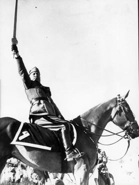 Benito Mussolini, Olaszország fasiszta diktátora egy ló nyergére pattanva sziklaszilárd arccal jobbjában az égnek emeli az iszlám kardját. Az olasz uralom alatt lévő Líbiában készült bizarr, ugyanakkor rendkívül kifejező fotó jól érzékelteti a diktátorok nagyzolási mániáját, a szemfülesek pedig jókora csalás nyomait is felfedezhetik rajta. De hogyan került Mussolini abba a bizonyos nyeregbe, és mit módosítottak a képen?
