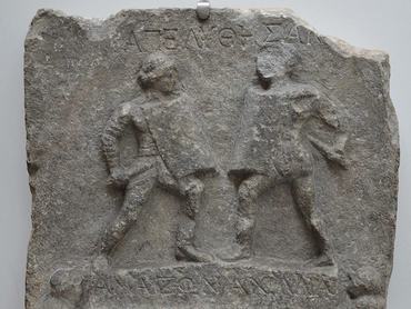 A fenti képen látható, Halicarnassusból származó ereklye szintén az első-második századból származik, és két nő neve olvasható rajta. A gladiátorfelszerelésben ábrázolt "Amazon" és "Achillia" harcának eredménye a „missio” lett, ami az arénai szolgálatból való szabadulást jelenti.