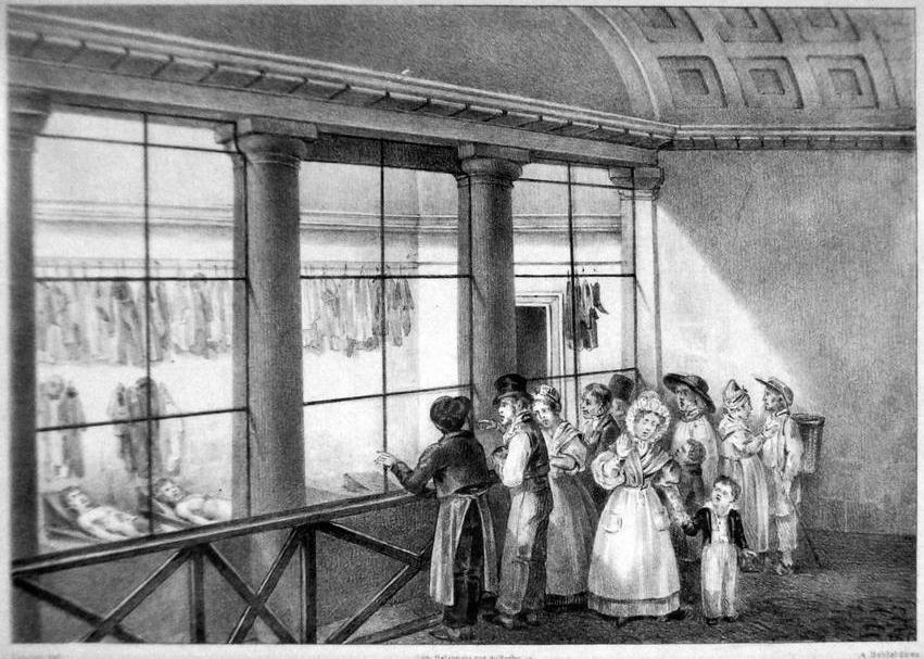 A hullaházba érkezéskor a holttesteket először levetkőztették, megvizsgálták, lefagyasztották, majd fekete márványtáblákon kitolták a nyilvánosság elé. Mivel a hullaházat 1882-ig nem hűtötték, a mennyezetről folyamatosan csöpögött a pára, amitől a halottak bőre fokozatosan felpuffadt. Tömegek tolongtak a nagy ablaktáblák előtt, mert a testek általában csak három napot időztek a kirakatban. Eltávolításuk után egy fénykép vagy viaszöntvény került a helyükre.