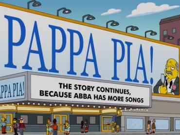 Végezetül, listánk utolsó helyén egy hazai vonatkozású, igen furcsa jóslat áll, melyet szintén A Simpson családnak köszönhetünk. A 24. évad Álom Spuckler kivitelben című nyitóepizódjában egy színház homlokzatán látható a Pappa Pia! című (fiktív) előadás reklámja, mely egyértelműen a nagysikerű ABBA-musical, a Mamma Mia! címén élcelődik, és az alatta olvasható szöveg szerint azért készült el, mert „az ABBA-nak vannak még dalai”. Öt évvel később, 2017-ben a magyarok valóban forgattak egy musicalfilmet Pappa Pia címmel, melynek ugyan az ABBA-hoz semmi köze, rendezője egy furcsa véletlennek köszönhetően éppen az a Csupó Gábor, aki a kezdeti években A Simpson család animációjáért felelt (az említett epizód idején viszont már évtizedek óta nem dolgozott a sorozatban).