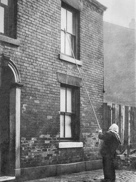 Az ébresztőóra feltalálása előtt jóval nehezebb dolga volt az elalvásra hajlamos embereknek, ha időben szerettek volna felkelni és beérni a munkahelyükre vagy (önálló iparosként) elkezdeni a napi munkát. A megoldást az „emberi ébresztőórák”, vagyis az ablakkopogtatók jelentették, akik reggelente körbejártak a városban, és hosszú botjukkal megkopogtatták a fizető kuncsaftok hálószobájának ablakát, akik a zajra felébredtek, és kikászálódhattak az ágyból.