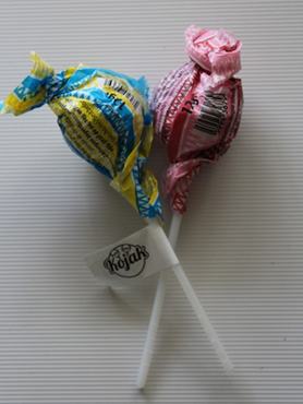 természetesen: a fehér, kerek nyalóka is csokiba vagy bevonóba volt mártva, ezt a delikvens vagy leszopogatta róla, vagy pedig elkezdte vele együtt rágni, a nyalókát formázva.