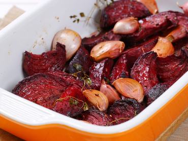 Keverd el a céklát az olajjal és a fűszerekkel is forgasd össze. Tedd a (forrólevegős) sütőbe a darabok méretétől függően legalább fél órára, majd még melegen forgasd meg a forró vajban és locsold meg egy nagyon kevés balzsamecettel. Friss rukkolával és felkockázott kígyuborkával tökéletes saláta lesz belőle.