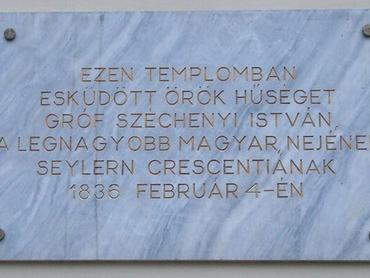Az asszony azonban nem omlott azonnal Széchenyi karjaiba, sőt, Zichy halála után sokáig nem is fogadta őt. Még az is megfordult a fejében, hogy minden kapcsolatot megszakít szerelmével. Végül 1836. február 4-én házasodtak össze. Krisztinavárosban, a Havas Boldogasszony templom falán még ma is tábla hirdeti, hogy itt kötöttek házasságot.