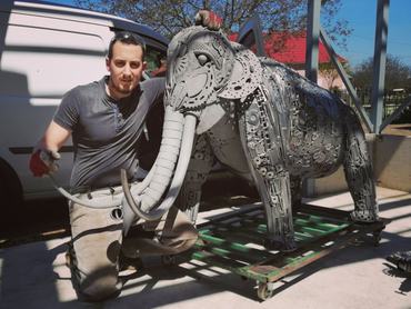„Mivel a munkatársam nagyon szerette a motorokat, ezért a műhelyben található, kimustrált alkatrészekből készítettem neki egy kétkerekű fémparipát. Ennek aztán akkora sikere lett, hogy az ismerősök, barátok sorban érkeztek az újabb megrendelésekkel. Sokszor előfordult, hogy amikor elvitték a vágyott szobrot, hoztak egy óriási adag ócskavasat, ami nekem igazi kincs! De válogattam bolhapiacon is, örömmel hoztam haza egy-egy bicikliláncot, hengerfejet, megkopott kanalat, villát.”