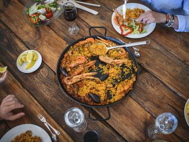 A forró zsiradékok keverékén pirítsd meg a hagymát és a rizst, majd sorban add hozzá a paradicsomon és a tenger gyümölcsein kívül az összes alapanyagot. Kis lángon kevergesd addig, amíg a rizs megpuhul, majd ekkor mehetnek hozzá a tenger gyümölcsei és a paradicsom. Így is adj neki 5 percet, majd melegen, citrommal és petrezselyemmel a tetején tálald.
