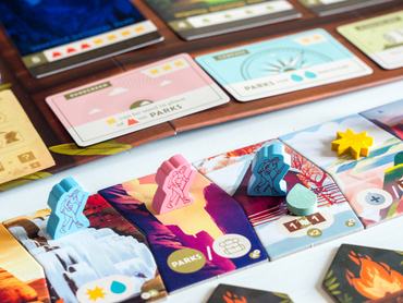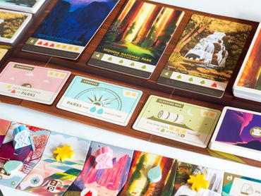 A játékban a legtöbb pontot a nemzeti parkokat jelölő kártyák adják. Bevallom, először egy kicsit megrettentem, hogy majd nem tudok kapcsolódni a játékhoz, hiszen mi közöm nekem Amerikához? A nemzetipark-kártyák grafikája azonban annyira gyönyörű, hogy miközben játszottam velük, komolyan elkezdtem vágyni rá, hogy felkapjam a hátizsákom, és felüljek a legelső gépre, ami a lehető legközelebb tesz le a Yosemite, a Yellowstone vagy bármelyik másik nemzeti parkhoz. A kártyákat több művész illusztrálta, a tervezők pedig a nemzeti parkokról szóló érdekességekkel látták el őket.