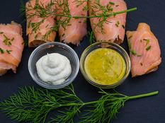 Terítsd ki a lazaccsíkokat, majd a többi hozzávalóból keverj sűrű sajtkrémet. Kend meg mindegyiket egy adaggal, majd teked fel, és már mehet is a saláta tetejére.