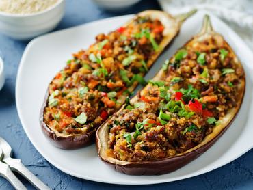 Vágd félbe a padlizsánokat, és süsd a grillen lefelé fordítva, amíg a belseje megpuhul. Ezek után kanalazd ki a padlizsán belsejét, vágd falatokra, és tedd egy tálba. Aprítsd fel a zöldségeket apró darabokra, és azok is mehetnek a padlizsánhoz, majd add a keverékhez a fűszereket is. Ha a bulgur megpuhult, azzal is forgasd össze, majd töltsd vissza a padlizsánokba. Adj neki még 15 percet a sütőben, és tálald friss petrezselyemmel. Hedonista változatban sajttal és olajon megpirított darált hússal egészítheted ki.