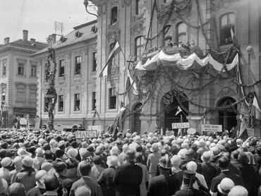 Trianon-ellenes tüntetés a szegedi városházánál 1920-ban