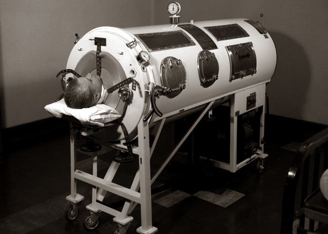 A járványos gyermekbénulás – ami az utóbbi években ijesztő módon újra felütötte fejét Amerikában – borzalmas betegség volt, melyet száz éve rettegtek az emberek. A legrosszabb tünetek közé tartozott a mellkasi izmok megbénulása, ami lehetetlenné tette a levegővételt.