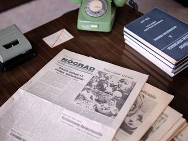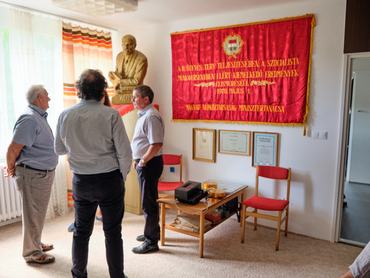 Selyemből készült, aranyzsinóros, óriási mozgalmi zászló az ötéves terv sikeres megvalósításának emlékére, Lenin-szobor a hatalmas páncélszekrény tetején, hamutartó, papírnehezék, a szocialista brigád naplója, kopott írógép, tárcsázós, piros, bakelit telefon, a dohányzóasztalon pedig Népszabadságok az 1980-as évekből – ez az egykori ceredi tsz-elnök irodájának első emelete, ahol évtizedekkel ezelőtt megállt az idő.