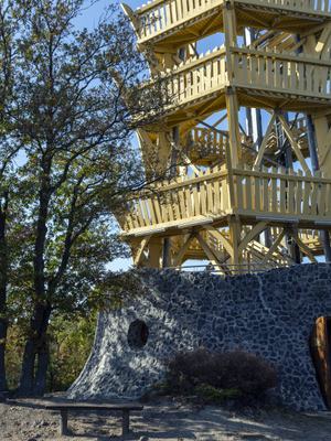 A kilátó tetejéről gyönyörű panoráma nyílik a Balatonra, a Tapolcai-medencére és a környező hegyekre.