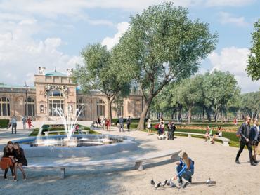 Innen nem messze találjuk a Millennium Házát, melynek parkjában egyedülálló rózsakertet telepítettek az épület bejáratához, ahol 1500 tő rózsa és rózsalugas keltik életre Budapest aranykorának hangulatát. A gyönyörű környezet egyszerre romantikus és szemet gyönyörködtető, hiszen a kert központi része egy új Zsolnay-díszkút is.