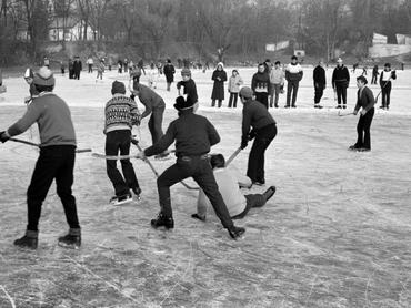 Régen azonban gyakorta jelentősen hidegebbek voltak a telek, mint manapság: ekkoriban egyszerű volt egy iskola udvarát vízzel felönteni, esetleg egy lakótelepi tér közepén alkalmi jégpályát teremteni. Nem kellett ennyit gondolkozni azon sem, hogy mikor biztonságos egy tó jegére csúszni: bár volt, aki inkább két kerékkel indult el ilyenkor is, ahogyan azt galériánk tanúsítja.