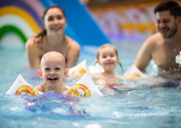 Miután jóllaktunk, és ejtőztünk kicsit, első utunk természetesen a fürdőbe vezetett. A Sonnentherme Lutzmannsburg, Európa vezető baba- és kisgyermekfürdője közvetlenül elérhető a szállodából egy fűtött, föld alatti összekötő folyosón keresztül, és a szállóvendégek korlátlanul élvezhetik minden szolgáltatását itt-tartózkodásuk alatt. Ahogy beléptünk, úgy tágult ki a pupillánk, mint ahogy egy kutyáé, ha imádott gazdájára néz.