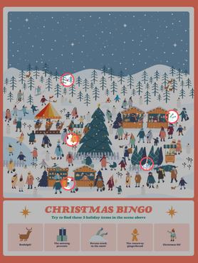 A keresett dolgok között van egy híres rénszarvas, ami mintha kissé elkóborolt volna a Mikulás szánjától. Elveszett néhány ajándék is. Egy másik szereplő szó szerint bajba került, hiszen beleragadt a hóba, és nem biztos, hogy egyedül boldogul. Ha jól megnézed a képet, észrevehetsz egy elszabadult mézeskalács figurát és egy bújkáló karácsonyi manót is. Ez utóbbi láthatóan nem nagyon szeretne feltűnést kelteni.