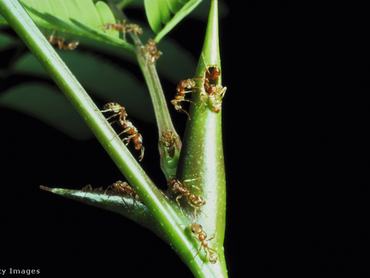 A kenyai szavannán él egy hangyafaj, az akáciahangya (Pseudomyrmex ferruginea), amely kölcsönösen előnyös együttműködést alakított ki egy akáciafával (Vachellia drepanolobium), amelyről a nevét is kapta. A hangya élőhelyet és táplálékot kap a fától, és cserébe megmarja azokat a növényevőket, amelyek enni próbálnak a fa leveleiből, leggyakrabban az elefántok ormányát. Mintegy két évtizeddel ezelőtt azonban egy apró, az Indiai-óceánon található szigetről új jövevények érkeztek. A nagyfejű hangyák hatékonyan vették fel a harcot őshonos rokonaikkal szemben, és egyre nagyobb területről szorították ki őket. Ezek a hangyák is ugyanazokon az akáciafán élnek, ám nem védik meg azokat a növényevőktől.