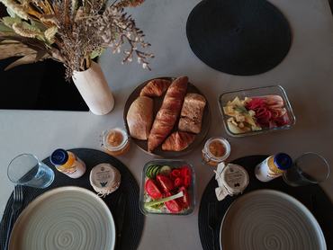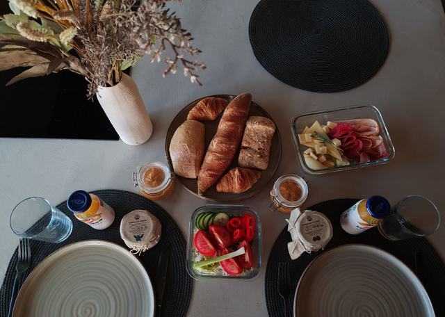 Ami a reggeli étkezést illeti, ennek igen izgalmas módját találták ki a szállásadók. A teraszon található egy négyszögletes műanyag (és víz-, valamint vadálló) láda, amelybe a pihenőket, alvókat nem megzavarva beleteszik 7, fél 8 tájban a bőséges piknikkosarakat (pékáru, felvágott, sajt, zöldség, joghurt, üdítő), melynek tetejét valamiféle gyermeki izgalommal nyitja fel aztán az ember. Elfogyasztani a benti kényelmes, tágas és jól felszerelt konyhában vagy a teraszon lévő asztalnál is lehetséges, lehetőség szerint az utóbbit érdemes választani.