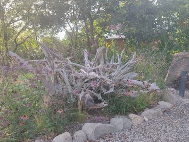 A 2-es autóútról az erdőbe vezető utakon már érdemes óvatosabban vezetni, ami nem is baj, hiszen így idejében elkezd lassulni lélekben is az ide látogató, hogy aztán már átkapcsolva érjék az első benyomások. A parkolóból egy ösvény indul az egyre bujább természet belsejébe, jobbra és balra is 3-3 ház található, melyeket úgy alakítottak ki, hogy a növényzet megteremti a bennük megszállók számára a privát szférát. Az ösvény mentén furcsa faképződmények és fából faragott gombák fokozzák a hangulatot.