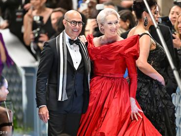 Miranda Priestly drámai, vörös estélyije a Met-gálára nagy talán a legbennfentesebb divatlapoknak is. Az is könnyen elképzelhető, hogy Molly Rogers csapata külön a filmhez készítette, ahogy az a szcenárió is hihető, hogy egy világhírű tervező egyedi kreációja ez, miként az is esélyes, hogy egy nagy divatház vállalja majd magára, mint az egyik még be nem mutatott kollekciójának modelljét. Marc Jacobst például lencsevégre kapták a forgatáson (ami semmit sem jelent, hiszen az első részben meg Valentino Garavani jelent meg önmagát alakítva), de a Harper’s BAZAAR brit kiadása azt sem tartaná lehetetlennek,