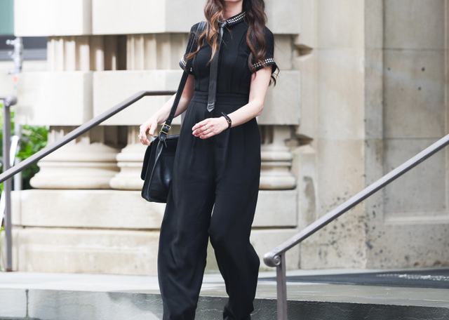 A táska a Celine jövő évi kollekciójából való, az ékszerek pedig a Briony Raymond márkától vannak.