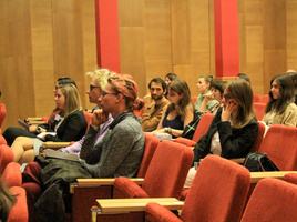 Az izgalmas beszélgetés után egy hasonlóan izgalmas és nagyon is aktuális témát boncolgató előadásra ültem be. Prof. dr. Varga Katalin, az ELTE Pszichológiai Intézetének oktatója SzüléSzületés minősége – Az emberkép tükre címmel tartott lendületes előadásában a jelen lévő, nagyrészt huszonéves hallgatóság megismerhette a természetes, háborítatlan szülés előnyeit, szemben a sajnos jelenleg Magyarországon is elterjedtebb medikalizált szüléssel. Jómagam kevés dologtól hatódom meg, de az újszülöttektől szinte mindig, így a két rövid videón bemutatott szülés hamar könnyek közeli állapotba hozott. A szülő nő akaratának, kompetenciájának, elképzeléseinek és alapvető jogainak tiszteletben tartása sajnos még ma sem általános Magyarországon; annál gyakoribb a kitoláskor kötelező háton fekvés, a szülésindítás és -gyorsítás, valamint a mesterséges oxitocin, aminek, mint a professzor asszony elmondta, hosszú távú hatásait nem ismerjük.