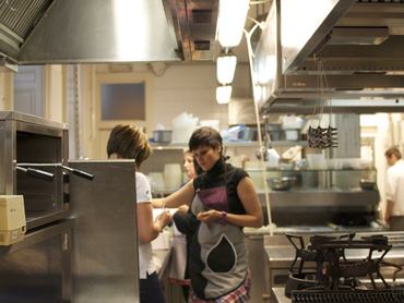 Tudtuk, hova megyünk, egy étterem belső udvarára, ahova nem esik be az eső, mert üveggel fedett, ezért nem kellett attól félnünk, hogy az időjárás kitol velünk. De tévedtünk. Az eső valóban nem esett be, de az a kilenc fok, amennyire lehűlt estére a levegő, igencsak megviselt minket. Nem lehet szépíteni, egyszerűen szétfagytunk. Bevalljuk, kicsit meglepett minket, hogy az étteremnek semmilyen megoldása nem volt a problémára. Se pokróc, se gázfűtés. Később valahonnan mégiscsak előkerült pár fehér lepedőszerűség, amivel a székeket szokták felöltöztetni az esküvőkön, ebbe burkolóztunk mindnyájan, szereztünk egy pálinkát, és így kezdtünk belelazulni az estébe.