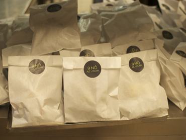Itt muszáj szólnunk pár szót a szervizről: a fogások nem tányérokon, hanem utcai ételeknek szánt csomagolásban érkeztek. A színes papírtányérokon felirat hirdette a 9 nőt, de a burritót papírzacskóban kaptuk, amit szintén személyre szabott, színes matricával zárták le. Műanyag egyedül a currys tálka volt, az is valamilyen formatervezett, átlátszó darab volt. Díjaznánk, ha a valódi utcai ételeket is hasonlóban kapnánk.