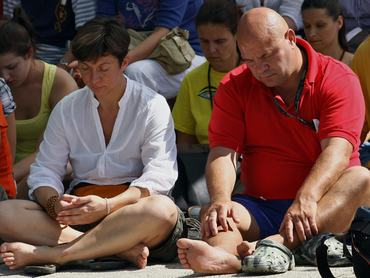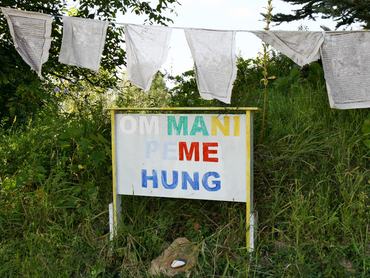 Taron, a Mátra aljában, a Kőrösi Csoma Sándor Emlékpark területén áll az ország második legnagyobb sztúpája, festői környezetben, hegyek ölelésében. A vidéki, eldugott helyszín ellenére hatalmas volt az érdeklődés az augusztus 20-i Ereklye kiállításon, és akit zavart a hőség, árnyas ligetekbe húzódhatott. A hegytetőre vezető apró út mentén smaragdzöldben pompázó mentaitallal és limonádéval kínáltak, útközben számos kegytárgyat, imazászlót és Tara-szobrot áruló sátrakat vertek fel - az utolsó sátorban kóstolót kaphattunk alapvető jógagyakorlatokból is. Amin azonnal megakadt a szemünk, az a Nevető Buddha sörnyitó volt: eszünkbe jutott a vatikáni szent merchandising és a meglehetősen blaszfém ’bólogatós Pápa’ is. Persze ebben az esetben inkább bájos a szándék, mintsem sértő – habár a Sárkány Centerben az ár töredékéért beszerezhettük volna a tárgyat, mégsem bírtuk itt hagyni 690-ért sem, mert tudtuk, hogy minden befolyt összeg nemes célra megy.