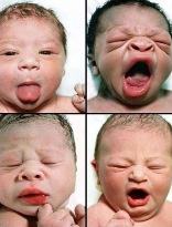 Az első ránézésre egyformán csúnyácska újszülöttek képeit szemlélve képről képre megerősödik bennünk az az elképzelés, hogy akár csak később, most is szemmel láthatóak a habitusbeli különbségek. Míg a babák egy része őszinte fájdalmat tolmácsol az ábrázatával, addig néhány pici arcán még mosolyféleséget is felfedezhetünk.