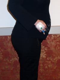 A gyerek nagyon viccesnek találta, amit a vödörrel az ágyban művelek (hangosan nevetett), de ezzel egyedül volt. Reggelre paff voltam, már a víz sem maradt meg bennem egy percnél tovább, és jártányi erőm sem volt. Egy rokon jött értem délelőtt, hogy orvoshoz vigyen, addigra már mobillal a kezemben elbóbiskoltam a programjaimat lemondó hívások között, ruhában. A gyereket elvitte anyósom magához, ez már úgyis előre meg volt szervezve. Annyira felkészületlen voltam, hogy csak az angol terhes könyvemet és az igazolványaimat vittem magammal az orvoshoz, semmi mást. De persze azonnal benntartottak a kórházban, perceken belül ment a vénámba a B vitamin (a hányás megállítására) és az infúzió, a kiszáradásom miatt.