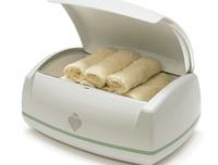 Szintén itt bukkantunk a törlőkendőket melegen és nedvesen tartó dobozkára, amely a kis törülközőket felmelegíti és nedvesen-melegen tartja. A 30 dolláros (kb. 6600 Ft) szettben négy bambuszból készült műselyem kendő található. Az előre kimosott, nedvesített és feltekert kendőcskék a dobozkában nedvesen és melegen tarthatók, így nem fog felszisszenni a kisbaba, ha hideg ronggyal érünk érzékeny popsibőréhez.