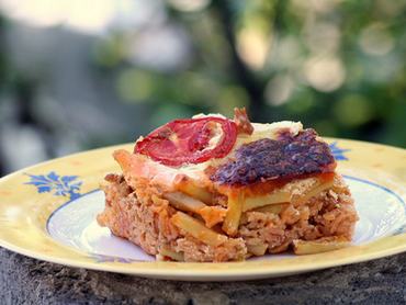 A következő recept egy, a hagyományostól eltérő rakott krumpli, amely nagy siker volt a családomban. Olyan, mint egy muszaka padlizsán nélkül, így ajánlanám a padlizsánt nem kedvelők figyelmébe is. Amelyik gyerek a bolognai spagettit szereti, feltételezhető, hogy ezt is kedvelni fogja. A római kömény és a fahéj a jellegzetes muszaka-ízhez kell, ha valaki idegenkedik, ízesítse a ragut úgy, ahogy szokta a spagettimártást., aki pedig nem akar besamelfőzéssel bajlódni, csak jó bőven szórja meg az étel tetejét sajttal.