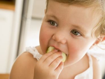 Kaja szempontjából meg valahol jótétemény, hogy ilyen. A tejkorszaknak ugyebár vége, majdnem. Reggel meg este van még egy kis tápszer, közte meg már sok minden, természetesen egyelőre főleg pépesítve. Tipikusan az a fajta gyerek, akinek egy babapiskótával vagy kiflivel be lehet tömni a száját. Azt rágcsálja, szopogatja, gyömöszöli és csendben van, amíg tart. De vannak extrémebb fogások is. Tök jól elrágcsál egy sárgarépát, de megkóstolta már az olajbogyót és a csemegeuborkát is. Az utóbbi főleg mókás volt, mert ott ült velünk az asztalnál, és bele-bele harapott, vagy csak nyalogatta, és olyan grimaszokat vágott, amilyeneket karikatúrákban lehet látni. Jókat röhögtünk rajta, ő meg velünk.