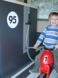 Oké, itt tényleg minden van: biztonsági konnektorvédők, szuper külön gyerekszoba, benne babakocsival (az apartmanokhoz alap, a szobákhoz kérni kell a recepción). A gyerekszoba olyan, hogy haza is vinném, ha férne, benne telefonra jelző bébiőr, és amelyik apartmanban lépcső is van, van biztonsági rács is, nehogy valami baj történjen. A folyosóra nyíló összes ajtó külön gyerekzárral is zárható a kilincset már elérő lógós kisdedek tevékenysége ellen, a folyosókon pedig motoros tankolási lehetőség és komoly forgalom.