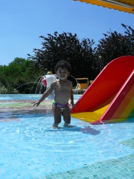 Persze van gyerekmedence, sőt, a medencék mellett elhelyezve több járóka is, hogy az épp' törölköző szülő ne aggódjon azon, hogy beleesik a gyerek a vízbe amíg megtörli magát, ez nekünk nagyon bejött, mert máskölönben úgy szoktam öltözni, hogy fél lábbal a nadrágban, fél kézzel Lolut fogom, egyik fülemmel meg Ádámot.