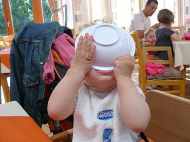 A félpanziós ellátás nagyon jó találmány. A reggelizés és a vacsora így lett külön programpont, amelyet a megannyi finom és izgalmas étel, a mindenhonnan fel-felhangzó gyereknevetés és persze a híres-nevezetes Bobó víziló (a Kolping kabalafigurájának) felbukkanása tett emlékezetessé (Ádám addig ölelgette Bobót, amíg a meleg szerepbe bújt munkatárs meg nem unta, legalábbis szerintünk, de mondjuk volt olyan gyerek, aki félt tőle). Ami van: minden nap külön gyerekmenü értékes ételekkel és bio alapanyagokkal, valamint üveges bébiételek, italporok (tápi) és a szakács által készített gyerekitalok. Mindig van emellett gyümölcs és egészséges étkezési lehetőség a felnőttknek és a nagyobb gyerekeknek is, sőt, ha az ember idejében szól, megoldható a gluténmentes (vagy más különleges) étrend és ételsor elkészítése is.