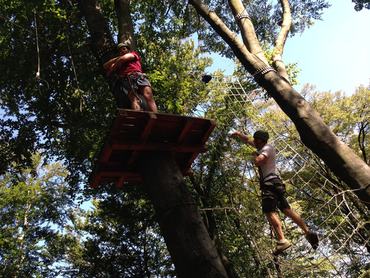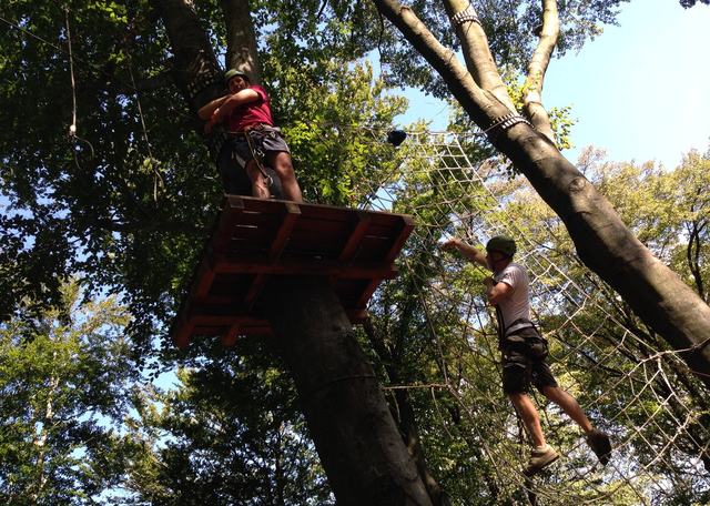 A Csillebérci kalandparkban egy családi jegy (2 gyerek, 2 felnőtt) kicsit több, mint 12 ezer forint, és ezért csak három órát mászhatunk. Ez tényleg nagyon drága, mégis érdemes lehet valami jeles nap környékén ellátogatni ide, mert már az egyméteresek is egy csomó pályán mehetnek, nem is igen lehet végigérni az összesen három órán belül. Ha felváltva vigyázunk a kölykökre, közben a felnőttek is játszhatnak Tarzant. Ha valaki nem szeretne tíz méter magasan lombkoronák között kötélen csúszva száguldozni, válthat 400 forintos sétálójegyet, így sokkal olcsóbb, viszont az élmény is kisebb.
