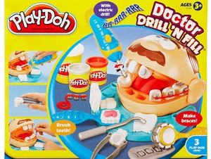 Igen, teljesen egyetértünk azzal, hogy a kisgyereket nem lehet elég korán rávezetni arra, mennyire fontos a rendszeres, alapos szájápolás. Azzal a céllal is maximálisan tudunk azonosulni, hogy tegyünk meg mindent annak érdekében, hogy a gyerek ne rettegjen a fogorvostól. De ez a játék akkor is nagyon gusztustalan. A Play Doh fogorvosos játéka egy kifeszített szájú fejből, különböző színű gyurmákból, játékfúróból és egyéb játék fogorvosi szerszámokból áll, a gyerek pedig tetszése szerint hozhat létre lyukas fogakat, amiket aztán kifúrhat, a lyukak helyét szép fehér gyurmával betömheti, sőt, teljes fogpótlást is készíthet, ami már nem is korona, hanem implantátum. Komolyan, már csak a nyálszívó hiányzik. Fogorvosok gyerekeinek el tudom képzelni, akiket biztosan motivál, hogy ugyanazt csinálhassák, mint apu, de egyébként???
