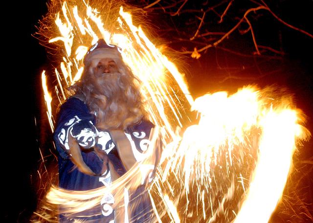 Orosz ismerősünk elmesélte, hogy az oroszoknál a karácsonyi ünneplés vallási vonulatát az 1917-es forradalmat követően elnyomták, csak 1992-től él újra ez a szokás. De, ahogy a mondás is tartja, ahol nagy a szükség, közel a segítség - az oroszok pillanatok alatt feltaláltak maguknak egy pótkarácsonyt, amit a pravoszláv újév álcájába bújtattak. Az ahhoz kapcsolódó alakok vették a főszerepet, ezért találkozni arrafelé sokkal inkább Fagyapóval (Gyed Maroz), mint Szent Miklóssal. Fagyapó egyébként úgy néz ki, mint egy kékruhás Mikulás. Vagy mint egy kék Santa Claus. Mostanra meg ez a kettő - a vallásos és a Fagyapós vonulat - teljesen összekavarodott, és van minden, mint a búcsúban.