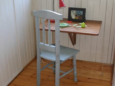Ilyenkor jöhetnek aztán a házi megoldások, az apróhirdetési és licitálós oldalak. Nálunk egy szék kellett a már meglévő asztal mellé. Ez egy egydélutános projekt volt, nem mondom, hogy ennél nem lehetett volna igényesebben megoldani, de gyorssegélynek megfelel, és a gyerek boldog a végeredménnyel.